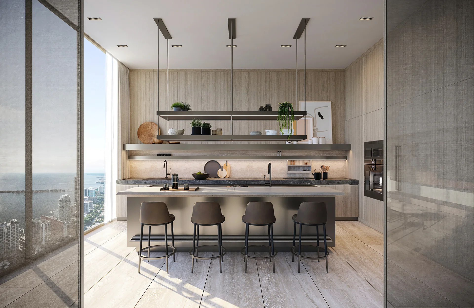 - Two-story residences feature Antonio Citterio-designed sculptural staircases.