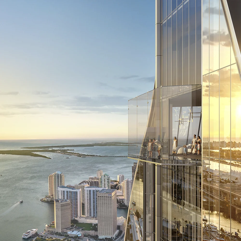 Rising 90 stories as Miami's second supertall, this ethereal structure is a vertical masterpiece choreographed for discovery. Envisioned by conceptual artist Carlos Ott and CUBE 3, the building features elegant vertical lines and graceful curves that create an architectural rhythm of balance. It stands not just as a building, but as a unique sculpture along the Biscayne Boulevard corridor, redefining the city's skyline with unprecedented sophistication.