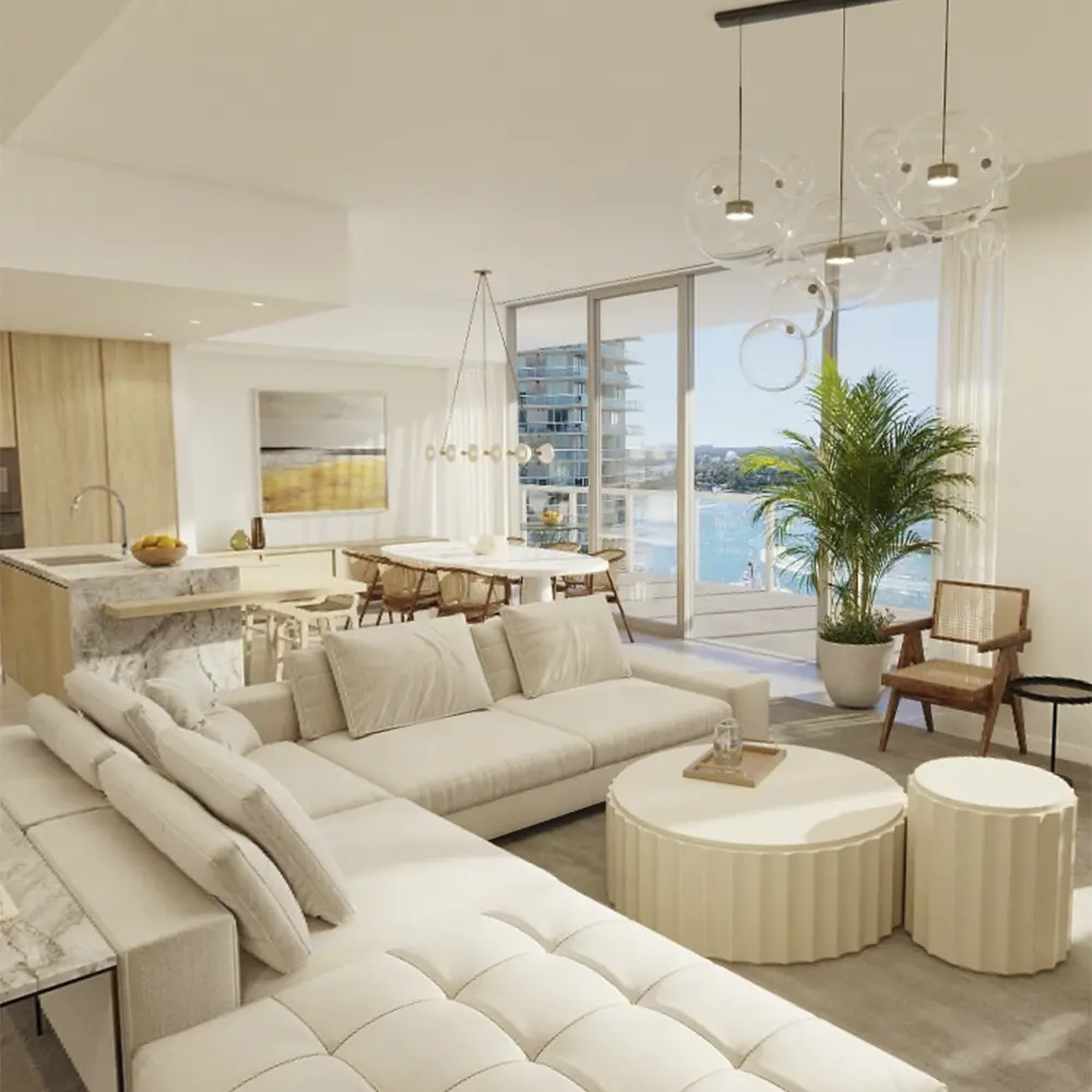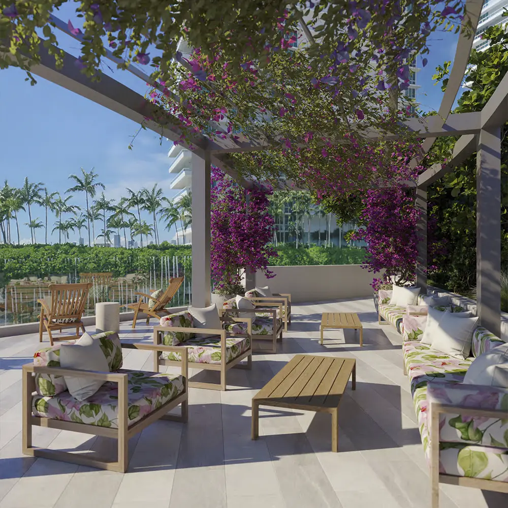 Discover 228 refined homes ranging from two to five bedrooms, each boasting private elevator access and spacious 11-foot ceilings. Floor-to-ceiling glass doors open to expansive 12-foot deep terraces equipped with wet bars for effortless entertaining. Inside, enjoy custom Italian cabinetry by Molteni&C, state-of-the-art Gaggenau appliances, and natural stone finishes, all curated to create a sophisticated sanctuary of comfort and elegance.
