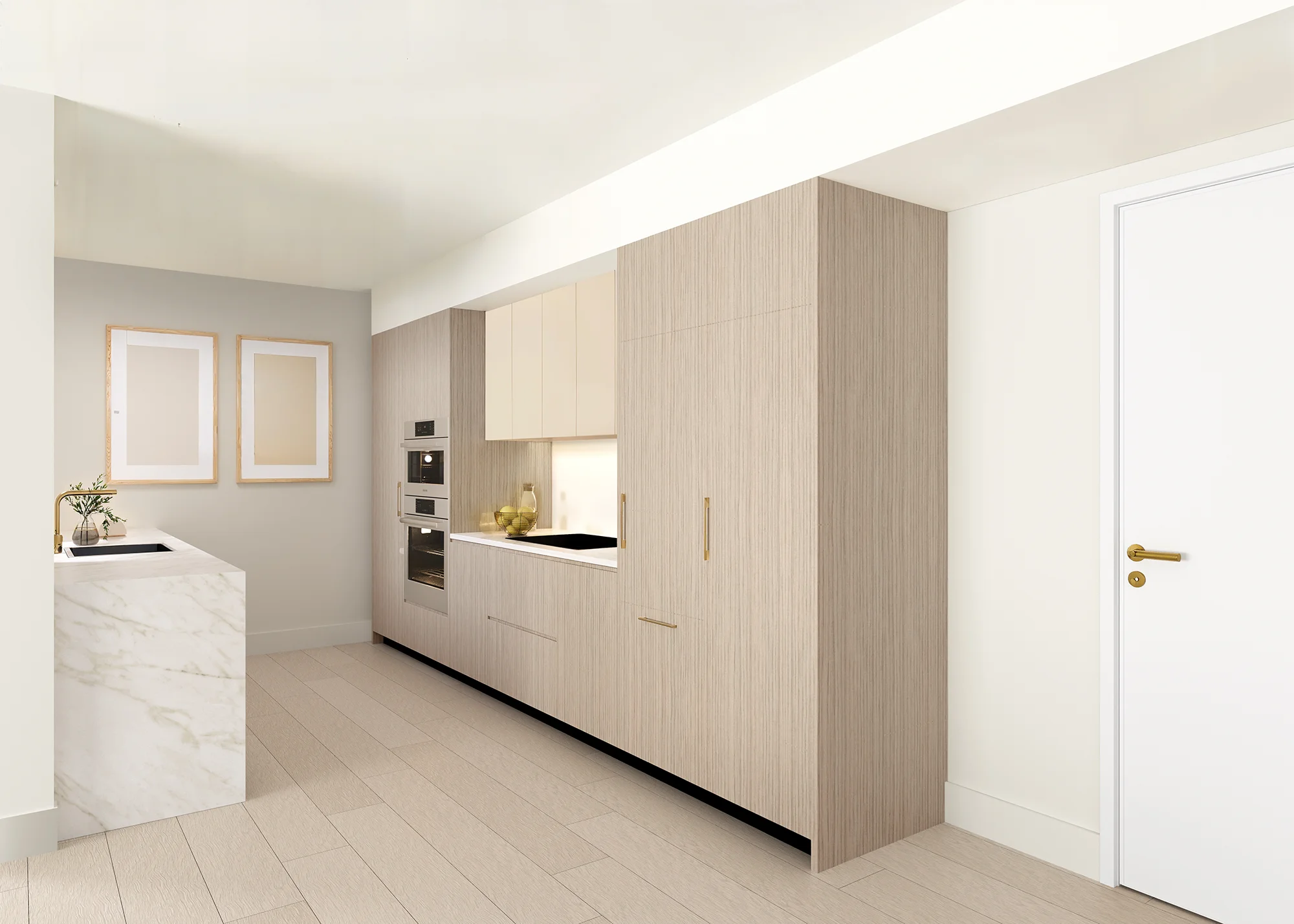 Residences are move-in ready with 10FT ceilings, oversized balconies, and floor-to-ceiling glass windows. Kitchens boast Italian modern Mia Cucina cabinetry, integrated Bosch appliances, and waterfall quartz countertops. Bathrooms feature frameless glass walk-in showers and imported Italian porcelain finishes.