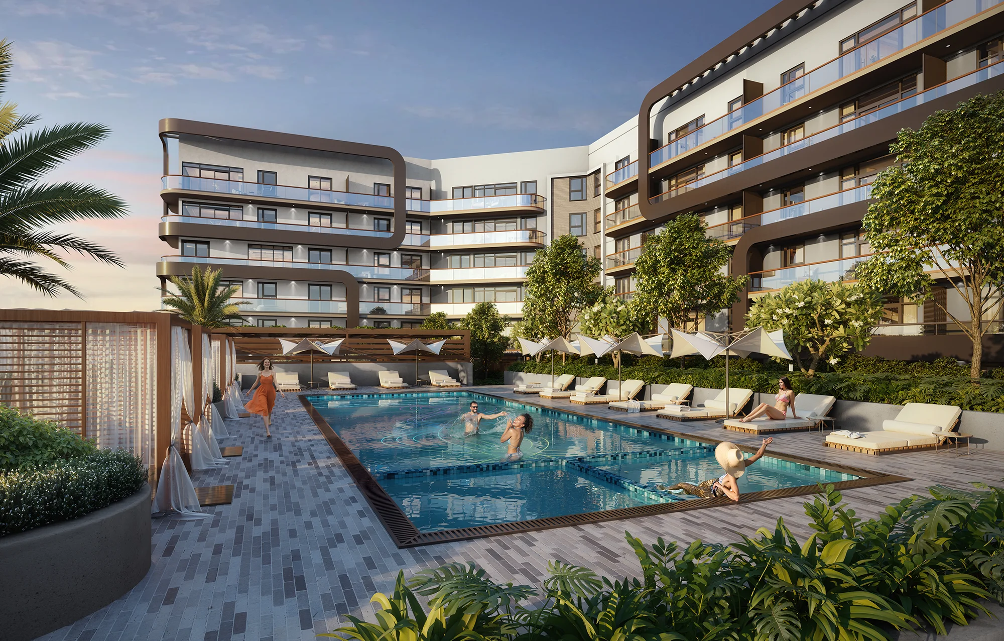 Enjoy 30,000 sq. ft. of lifestyle energy. Amenities include a clean-edge pool with private cabanas and two hot tubs, and communal BBQ stations. The Wellness Center offers a 3,000 sq. ft. fitness center, steam showers, sauna, and cold plunges. Social spaces feature a co-working lounge (with private conference rooms), a content creation room, and a media screening room.
